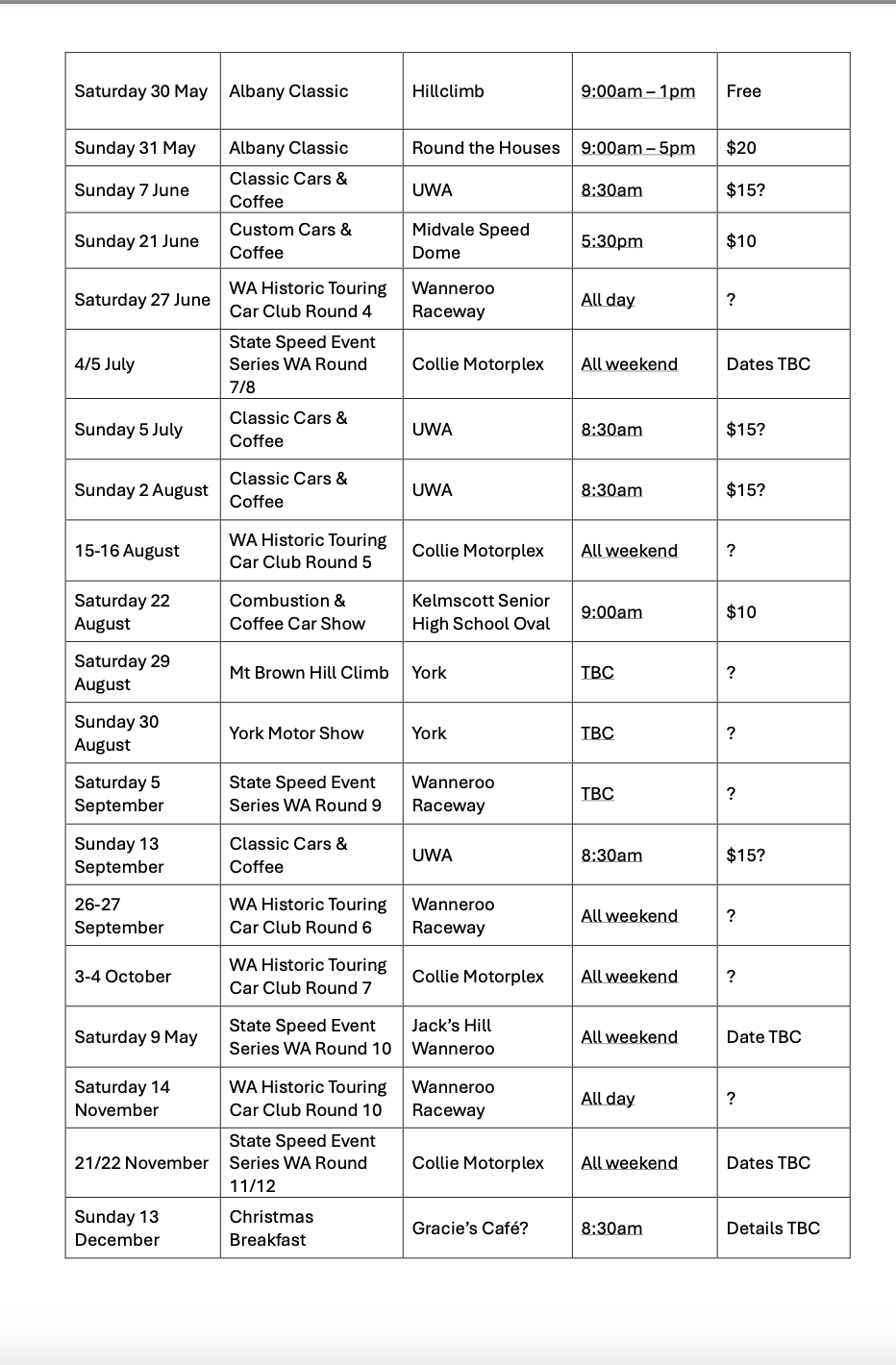 Our monthly meetings are a great place to meet and chat with others that have similar interest. We have special event evenings with things for sale, guest speakers and BBQ’s. Most of our meetings include drinks and nibbles, with social interaction and car talk encouraged.
